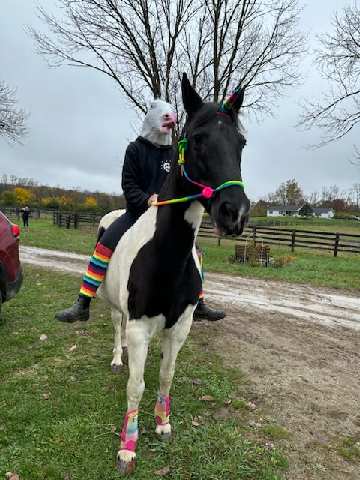 I was just informed that today is National Unicorn Day. Hecking UNICORN DAY. Absolutely the best holiday following Halloween. Already making plans for next year. In the meantime, here’s a picture of my horse in her unicorn costume, and a picture of me as a unicorn riding her dressed as a unicorn. She was surprisingly tolerant of both!